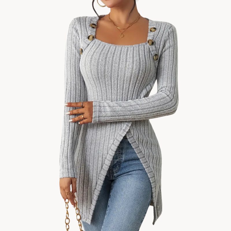 Rosalina | Asymmetrisches geknöpftes Design Damen Ripp Top